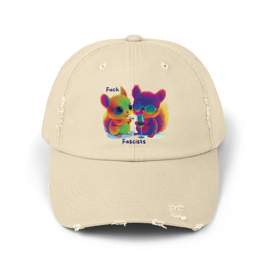 Cute Resist Distressed Dad Hat | Anti-Fascist Rainbow Kawaii Cap