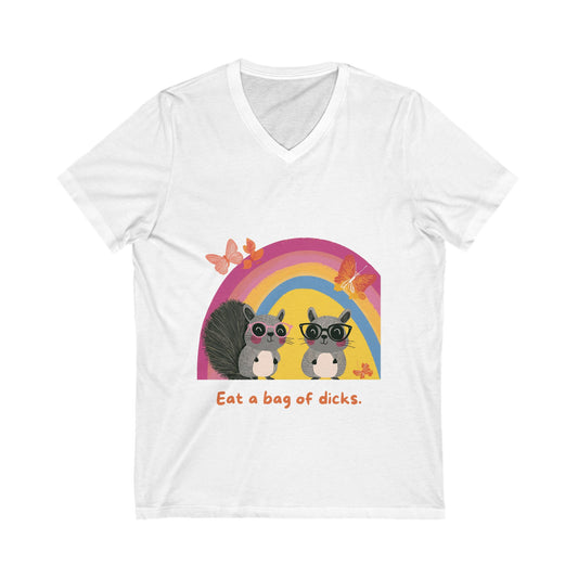 Kawaii Squirrel Rainbow V-Neck | Cute Rebellious Animals | Sassy Unisex Tee