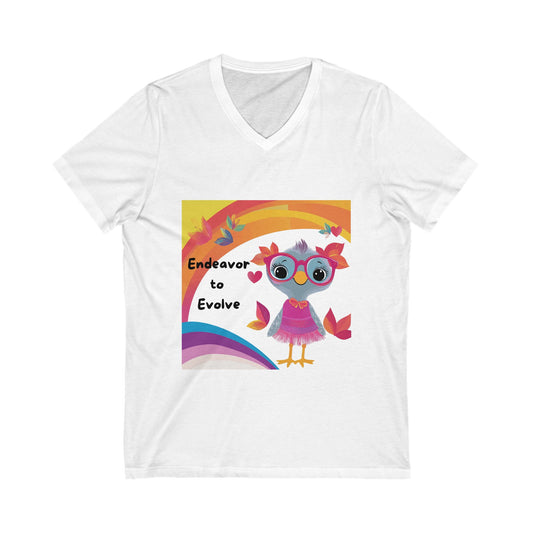 Kawaii Owl Evolution V-Neck T-Shirt | Inspirational Cute Rainbow Design | Empowerment Tee