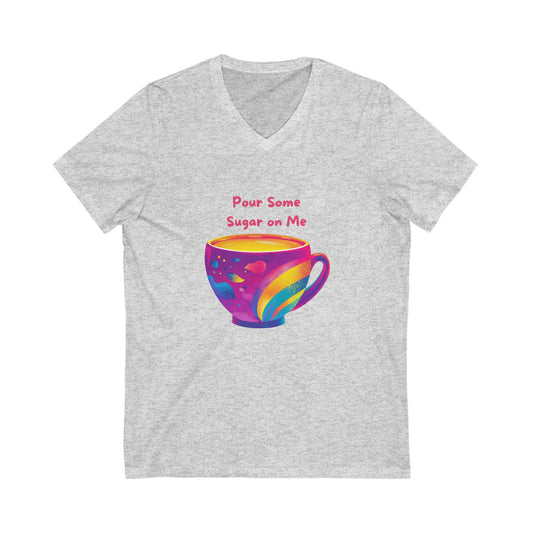 Rainbow Coffee Cup V-Neck T-Shirt | LGBTQ+ Pride Kawaii Design | Unisex Coffee Lover Tee