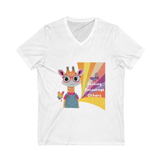 Kawaii Giraffe Encouragement V-Neck | Cute Activist Unisex Tee | Empowerment T-Shirt