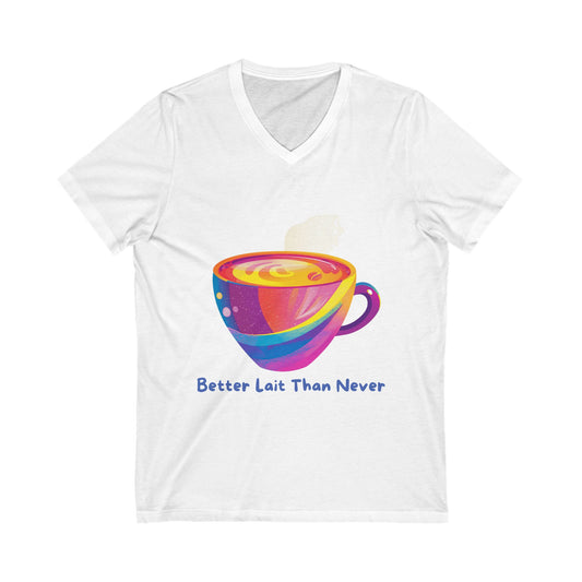 Rainbow Pride Coffee Latte Art V-Neck | LGBTQ+ Kawaii Cup Design | Better Lait Than Never