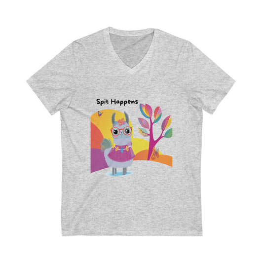 Spit Happens Kawaii Llama V-Neck T-Shirt | Cute Whimsical Animal Unisex Tee