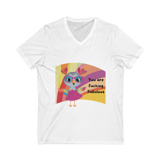 Fabulous Rainbow Owl V-Neck T-Shirt | Cute Empowerment Unisex Tee