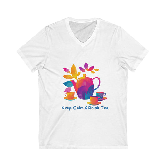 Keep Calm & Drink Tea V-Neck | Kawaii Tea Lover Gift | Peaceful Mindfulness Tee