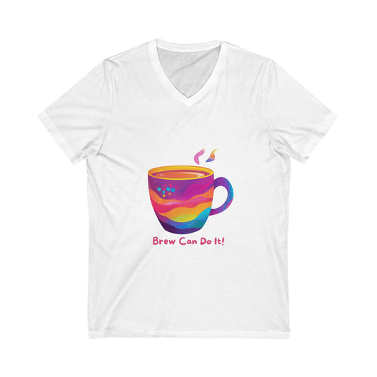 Rainbow Coffee Cup V-Neck | Brew Can Do It | Kawaii Empowerment Tee