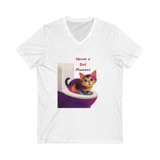 Never a Dull Moment Cat V-Neck T-Shirt | Funny Cat Lover Gift | Cute Colorful Pet Tee