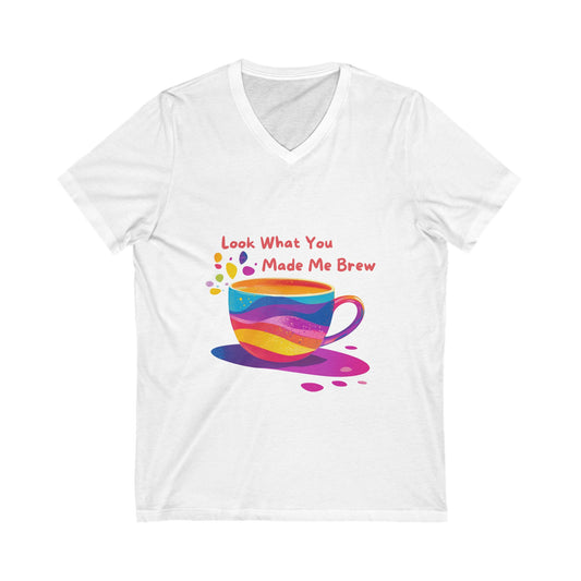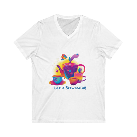 Life is Brewteaful V-Neck Tee | Kawaii Coffee Tea Lover Gift | Colorful Cup Design