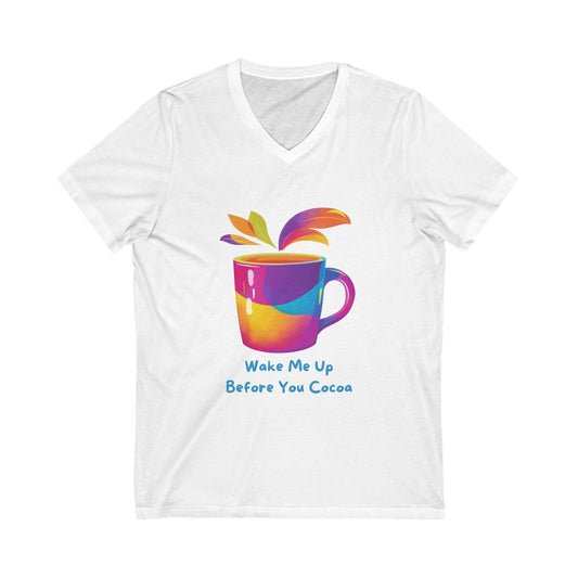 Wake Me Up Before You Cocoa | Rainbow Coffee Mug V-Neck T-Shirt | Kawaii Hot Chocolate Tee