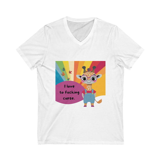 Kawaii Giraffe Rainbow V-Neck T-Shirt | Cute Bold Statement Unisex Tee | Sassy Animal Pride