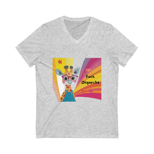 Kawaii Giraffe Economic Justice V-Neck | Cute Activist Unisex Tee