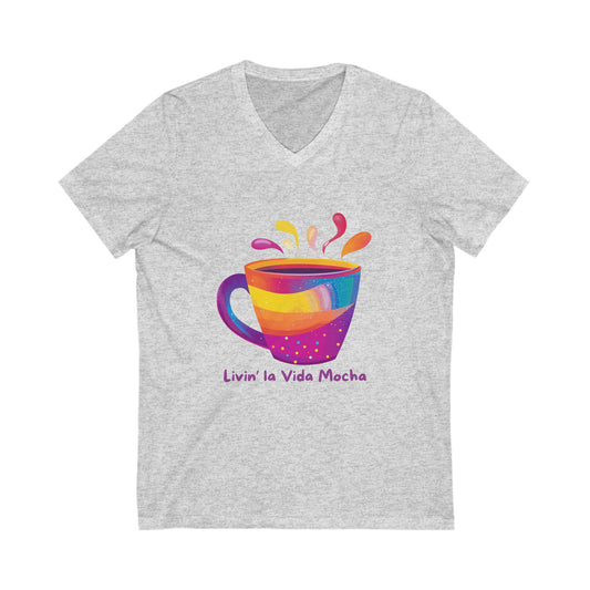 Livin' La Vida Mocha Rainbow Coffee V-Neck | Pride Coffee Lover Gift | Cute Kawaii Cafe Tee