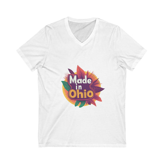 Made in Ohio V-Neck T-Shirt | Retro Sunburst State Pride Design | Unisex Premium Tee