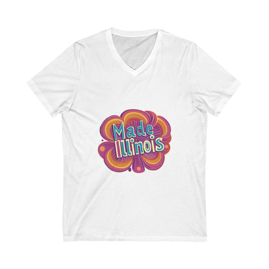Made in Illinois Retro V-Neck T-Shirt | Vintage State Pride Psychedelic Design Unisex Tee