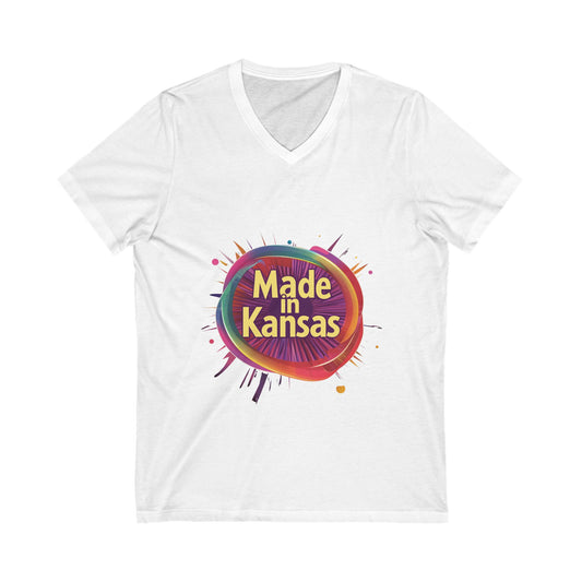 Made in Kansas Pride V-Neck T-Shirt | Retro Rainbow Circle Design | State Pride Tee