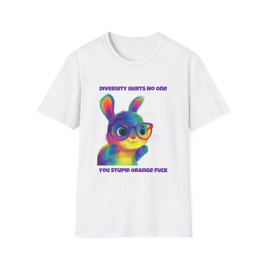 Diversity Rainbow Bunny T-Shirt | Progressive Activist Tee | Kawaii Protest Design