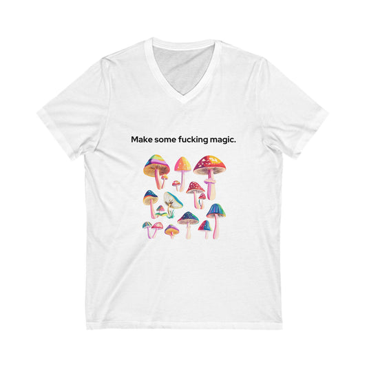 Magical Mushroom V-Neck Tee | Psychedelic Fungi Art | Empowerment Statement T-Shirt