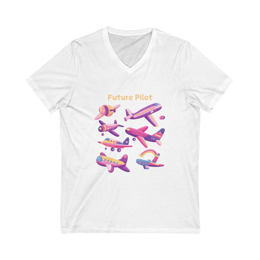 Future Pilot Kawaii Airplanes V-Neck T-Shirt | Aviation Dreams Gift