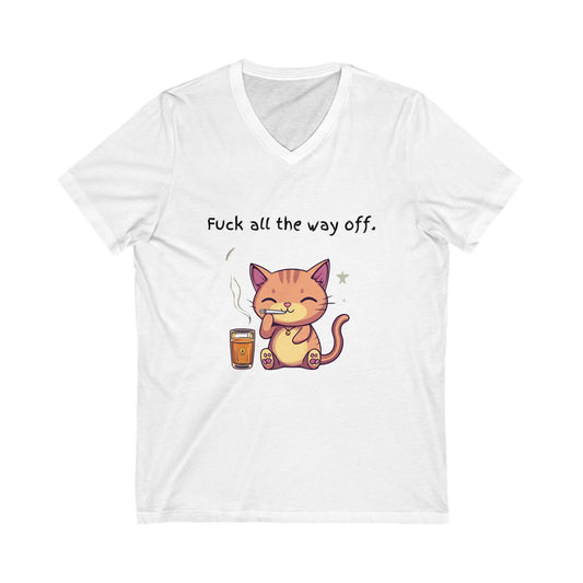 Kawaii Coffee Cat V-Neck Tee | Sassy Pet Lover Gift | Cute Attitude Cat T-Shirt