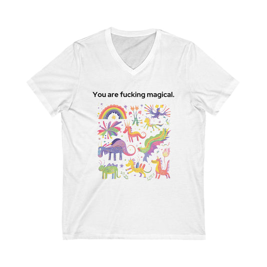 Magical Unicorn V-Neck T-Shirt | Empowering Rainbow Art | Kawaii Fantasy Unisex Tee