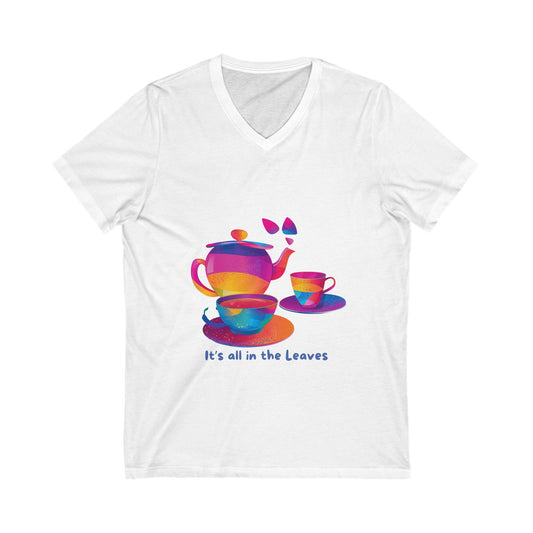 Rainbow Tea Reading V-Neck T-Shirt | LGBTQ+ Mystical Teapot Design | Inclusive Tea Lover Gift