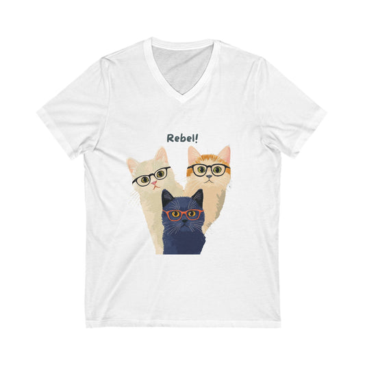 Rebel Cats V-Neck T-Shirt | Nerdy Kitty Squad | Intelligent Cat Lover Gift
