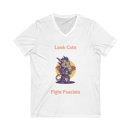Kawaii Anti-Fascist V-Neck T-Shirt | Cute Activist Design | Unisex Resistance Tee