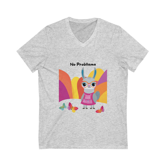 No Probllama Kawaii Bunny V-Neck | Cute Rainbow Positivity Tee