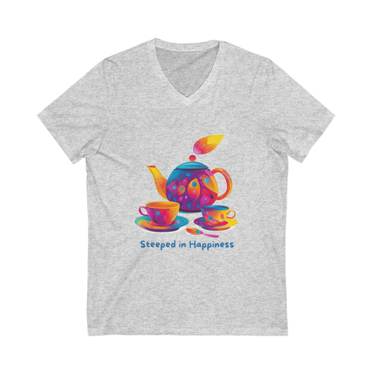Steeped in Happiness Tea Party V-Neck | Kawaii Rainbow Tea Set Unisex Tee