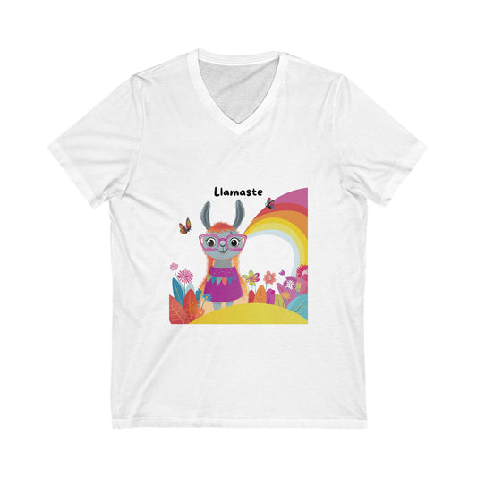 Llamaste Rainbow V-Neck T-Shirt | Cute Meditation Llama | Spiritual Animal Yoga Tee