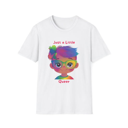 Just a Little Queer Rainbow Pride T-Shirt | Cute Character Unisex Tee