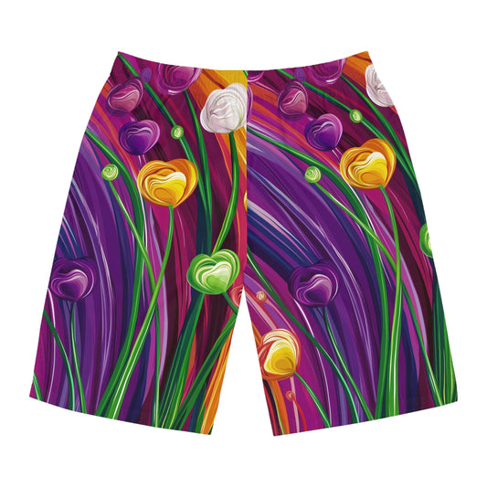Vibrant Tulip Flow Athletic Shorts | Artistic Floral Design