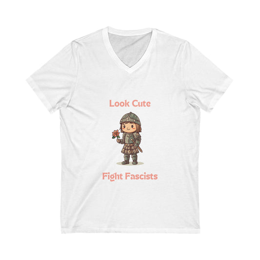 Look Cute Fight Fascists V-Neck | Kawaii Warrior Anti-Fascist T-Shirt