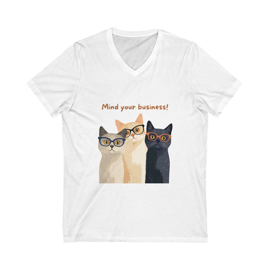 Mind Your Business Cat V-Neck | Nerdy Cats Shirt | Professional Pet Lover Tee