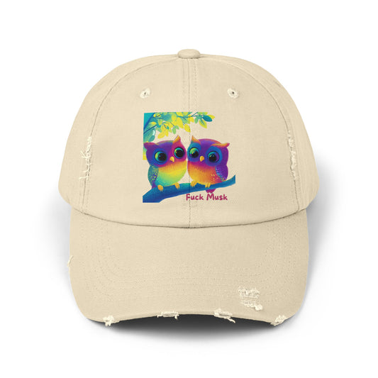 Rainbow Owls Feminist Distressed Dad Hat | Anti-Patriarchy Cap