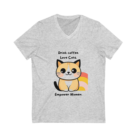 Feminist Cat Coffee V-Neck | Women Empowerment Tee | Kawaii Cat Lover Gift