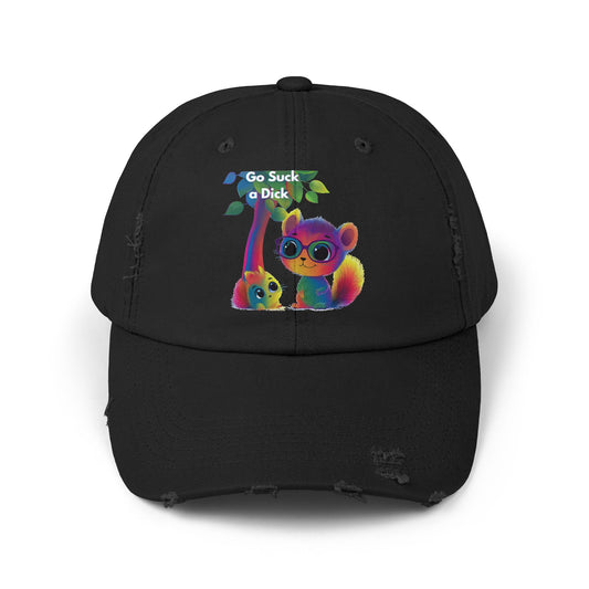 Rainbow Squirrel Distressed Dad Hat | Sassy Statement Cap | Cute Activist Unisex Cotton Twill